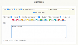 画面上部の入力エリアに情報を入力して更新ボタンを押すか,カレンダーの日付部分をクリックすると新規追加できます。