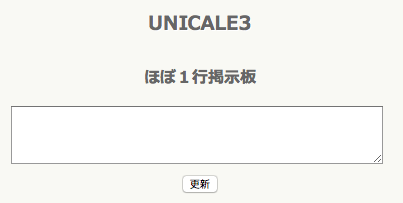 クリックすると記入モードになります。追加更新して「更新」ボタンを押すと記録されます。シンプルな掲示板です。「ほぼ1行掲示板」ですが,実は複数行書けます。