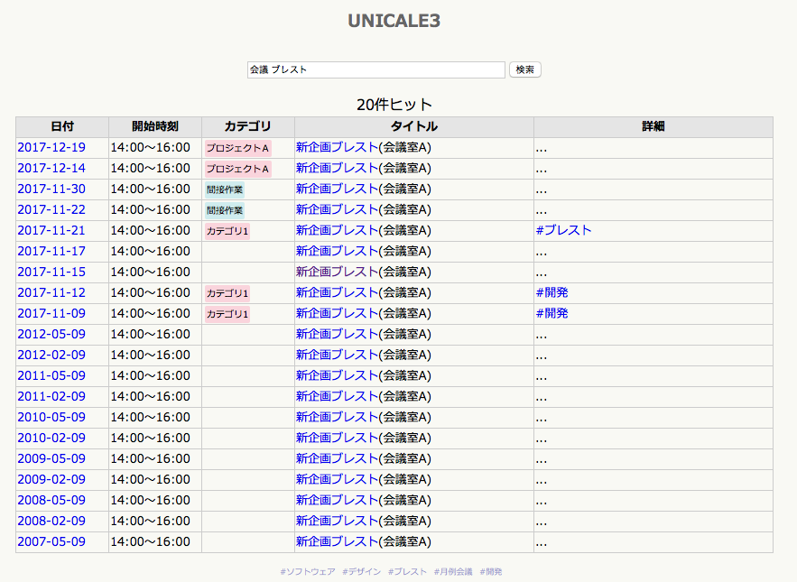 検索対象は,「用事」「場所」「詳細」のみになります。