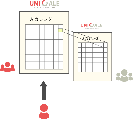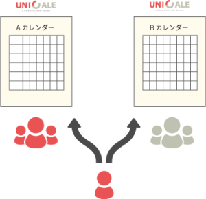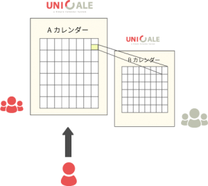 カレンダーAをメインカレンダーとし,カレンダーBを外部カレンダーとします。 - カレンダーAの「設定」から,「外部UNICALEのURL」を指定します。